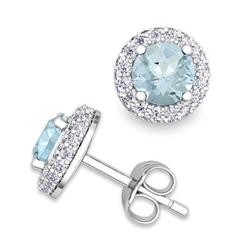 Pave Diamond and Aquamarine Earrings, 5mm Studs