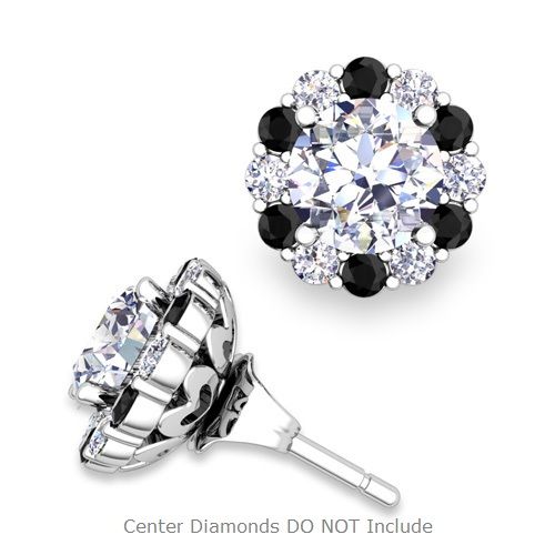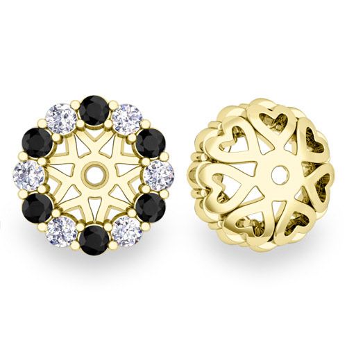 These earrings jackets feature round brilliant diamonds alternating with black diamonds set in 18k white or yellow gold. Give your stud earrings a band new look with these stunning earring jackets. Just simply slip your stud post through the hole of the earring jacket.