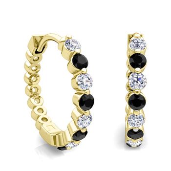 These beautifully crafted hoop earrings feature sparkling black and white round brilliant cut diamonds set in gleaming 18k white or yellow gold. Hoops are one of the most perfect jewelry accessories for a romantic night out or also go well with your favorite blue jeans for your upcoming holiday vacation. To get the radiant look, add these fabulous hoop earrings to your jewelry box today!