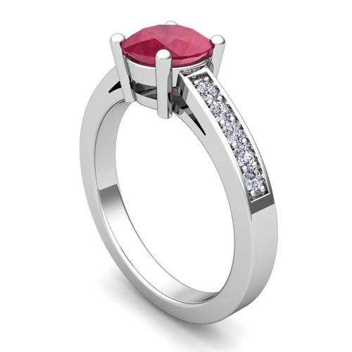 A dazzling ring of a 6mm vibrant red ruby set delicately in platinum fits gorgeously together with a matching diamond wedding band to make a harmonious couple.