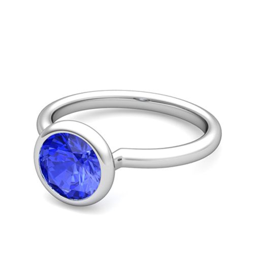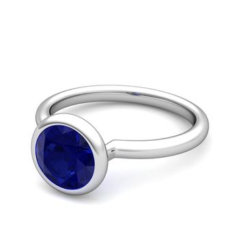 Bezel Set Solitaire Blue Sapphire Ring in Platinum, 5mm