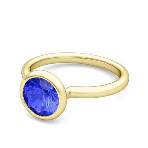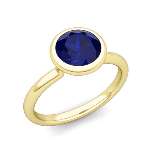 Bezel Set Solitaire Blue Sapphire Ring in 14k Gold, 7mm
