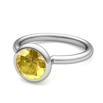 Bezel Set Solitaire Yellow Sapphire Ring in Platinum, 6mm