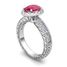 Vintage Inspired Diamond and Ruby Engagement Ring Bridal Set in Platinum, 7x5mm