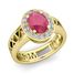 Halo Ruby Engagement Ring in 18k Gold Roman Numeral Band, 9x7mm