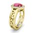 Halo Pink Sapphire Engagement Ring in 18k Gold Roman Numeral Band, 7x5mm
