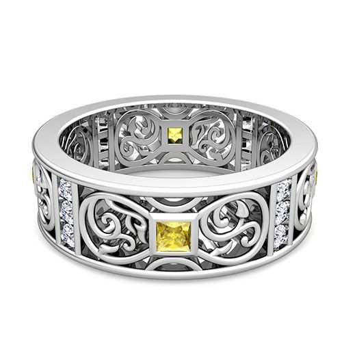 Princess Cut Celtic Knot Yellow Sapphire Wedding Band Ring in Platinum, 7.5mm