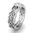 This stunning wedding ring showcase beautiful Celtic knots interspersed with a bezel set solitaire diamond set in a Celtic knot wedding band. What an eye-catching and unique ring as a wedding ring or engagement ring! Available in 14k, 18k white, yellow or rose gold, and platinum.
