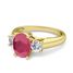 Classic Diamond and Ruby Three Stone Ring in 18k Gold, 9x7mm