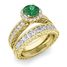 Vintage Inspired Diamond and Emerald Engagement Ring Bridal Set in 18k Gold, 5mm