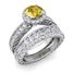 Vintage Inspired Diamond and Yellow Sapphire Engagement Ring Bridal Set in Platinum, 6mm