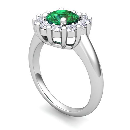 Emerald and Halo Diamond Engagement Ring Bridal Set in Platinum, 6mm