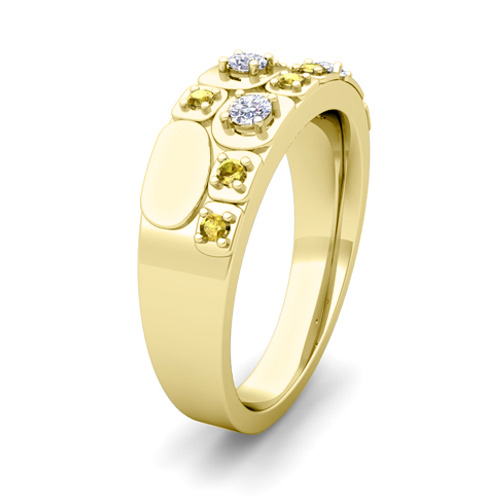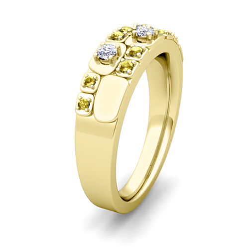Matching Wedding Ring in 14k Gold Plaid Diamond Yellow Sapphire Wedding Band