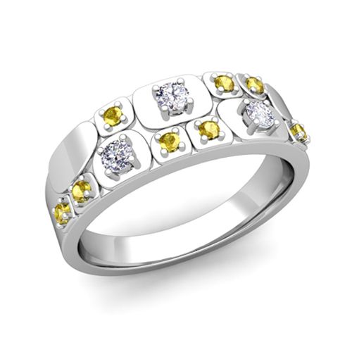 Matching Wedding Ring in Platinum Plaid Diamond Yellow Sapphire Wedding Band