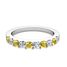 This wedding ring features sparkling diamonds and yellow sapphires set in an enduring platinum band. Delicate in design, perfect as a wedding band or anniversary ring.