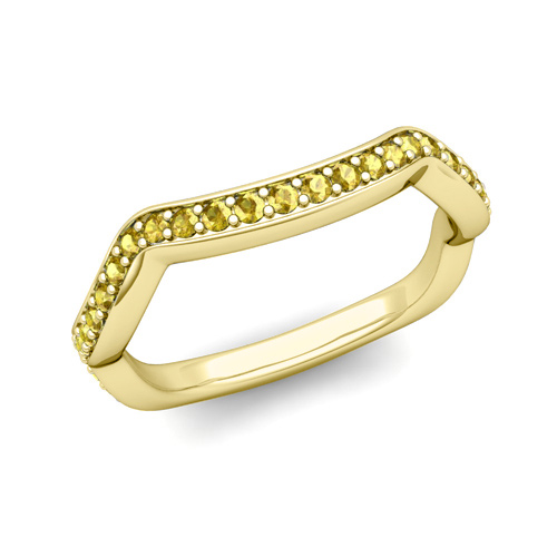Unique Curved Yellow Sapphire Wedding Ring Band in 14k Gold