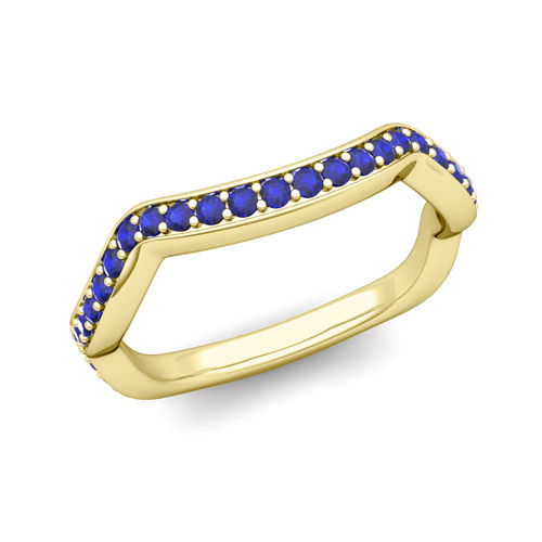 Unique Curved Blue Sapphire Wedding Ring Band in 18k Gold