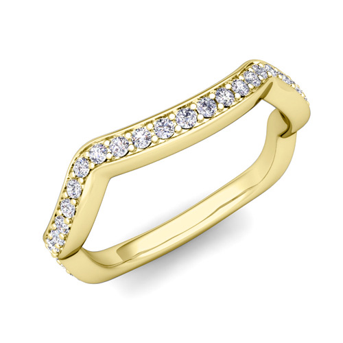 Unique Curved Diamond Wedding Ring Band in 18k Gold