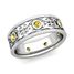 Celtic Wedding Band for Men in Platinum Bezel Set Yellow Sapphire Ring, 7.5mm