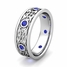 Celtic Wedding Band for Men in Platinum Bezel Set Sapphire Ring, 7.5mm