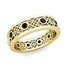 This eye-catching Celtic wedding ring showcases intricate Celtic Heart Knots interspersed beautifully with bezel set black diamonds set in a 14k gold band.