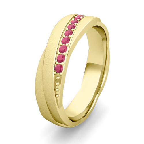 Satin Finish Matching Wedding Band in 18k Gold Ruby Rolling Wedding Rings