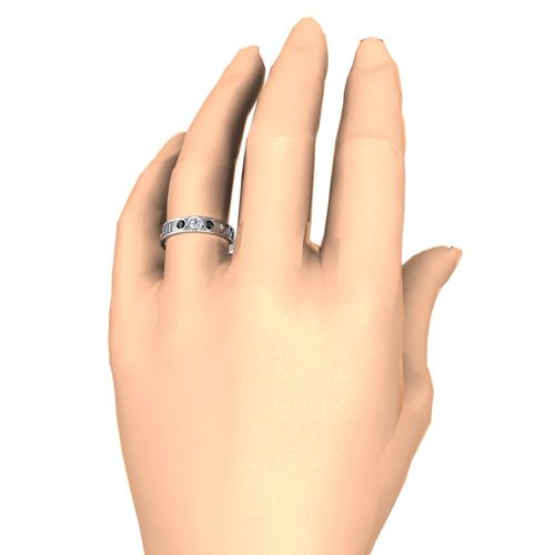 Custom Roman Numeral Wedding Band in 3 Stone Ring Setting