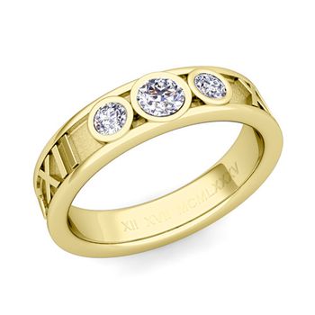 3 Stone Diamond Roman Numeral Wedding Ring in 14k Gold