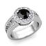 This breathtaking roman numeral engagement ring showcases a 6mm black diamond surrounded by sparkling diamonds set in a 14k gold halo setting