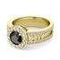 Roman Numeral Black Diamond Engagement Ring in 18k Gold Halo Setting, 6mm
