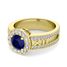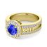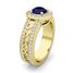 Roman Numeral Ceylon sapphire Engagement Ring in 18k Gold Halo Setting, 5mm