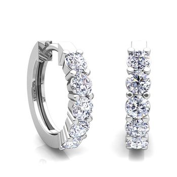 These strikingly beautiful diamond hoop earrings are set in 14k gold prong set hoops, a delicate accent to any ensemble.