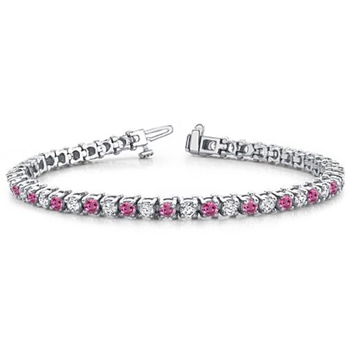 Pink Sapphire and Diamond Bracelet in 18k White Gold (G, SI1, 4.25 cttw) 7 inches