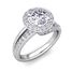Beautifully striking and unique, this eye-catching halo ring is flawlessly crafted with two floating spirals of pave set diamonds to embellish the center white diamond surrounded by dazzling diamonds to add extra sparkles! To complete the gorgeous look, a matching pave diamond wedding band is available to be a perfect bridal set for your love. Available in 14k, 18k white, yellow or rose gold, and platinum.