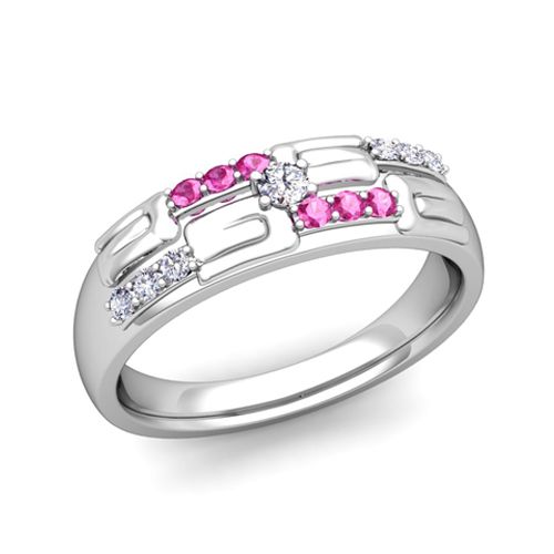 Matching Wedding Ring in Platinum Unique Diamond Pink Sapphire Wedding Band