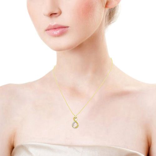 Stunning in sparkle, this diamond and gemstone pendant showcases vivid yellow sapphires and round brilliant diamonds set in a 18k gold infinity pendant dangling beautifully from a 18-inch gold chain to complete the gorgeous look. The intricate and romantic design makes this sapphire necklace a perfect chose as a wedding anniversary gift for your love.