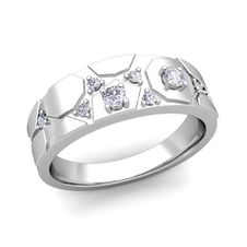 Matching Wedding Ring in 14k Gold Geometric Diamond Wedding Band