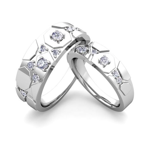 Geometric Unique Wedding Ring Set