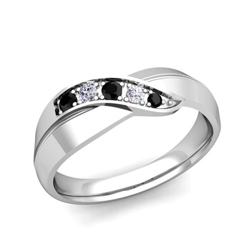 Matching Wedding Band in 14k Gold Infinity Black and White Diamond Wedding Rings