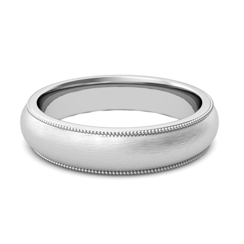 This 5mm brushed finish wedding band is framed by milgrain edges and rounded inside edges for comfortable wear. Perfect platinum wedding band for both men and women.