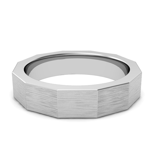 This platinum 5mm wedding band is striking and bold with a mixed brushed finish. Comfort is ensured with rounded inside edges of the ring.