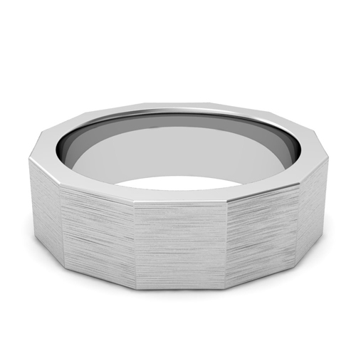 This platinum 7mm wedding band is striking and bold with a mixed brushed finish. Comfort is ensured with rounded inside edges of the ring.