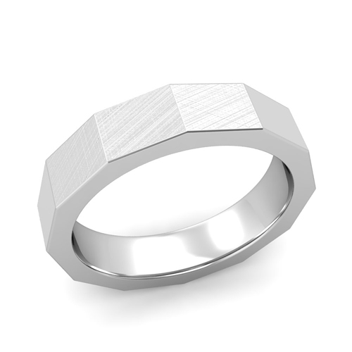 Square Comfort Fit Wedding Ring in Platinum Matte Brushed Finish Band, 6mm
