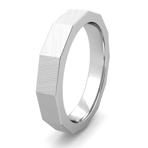 This platinum 4mm wedding band is striking and bold with a mixed brushed finish. Comfort is ensured with rounded inside edges of the ring.