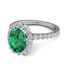 Petite Pave Set Diamond and Emerald Halo Engagement Ring in 14k Gold, 8x6mm