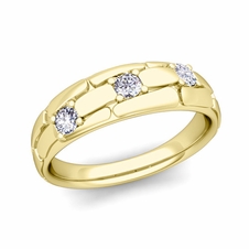 This nature inspired wedding band showcases brilliant round diamond and vibrant blue sapphire set beautifully in a 3 stone ring setting. Intricate and unique design makes this ring a perfect choice as a wedding ring or anniversary ring for men and women. Available in 14k, 18k white, yellow or rose gold, and platinum.