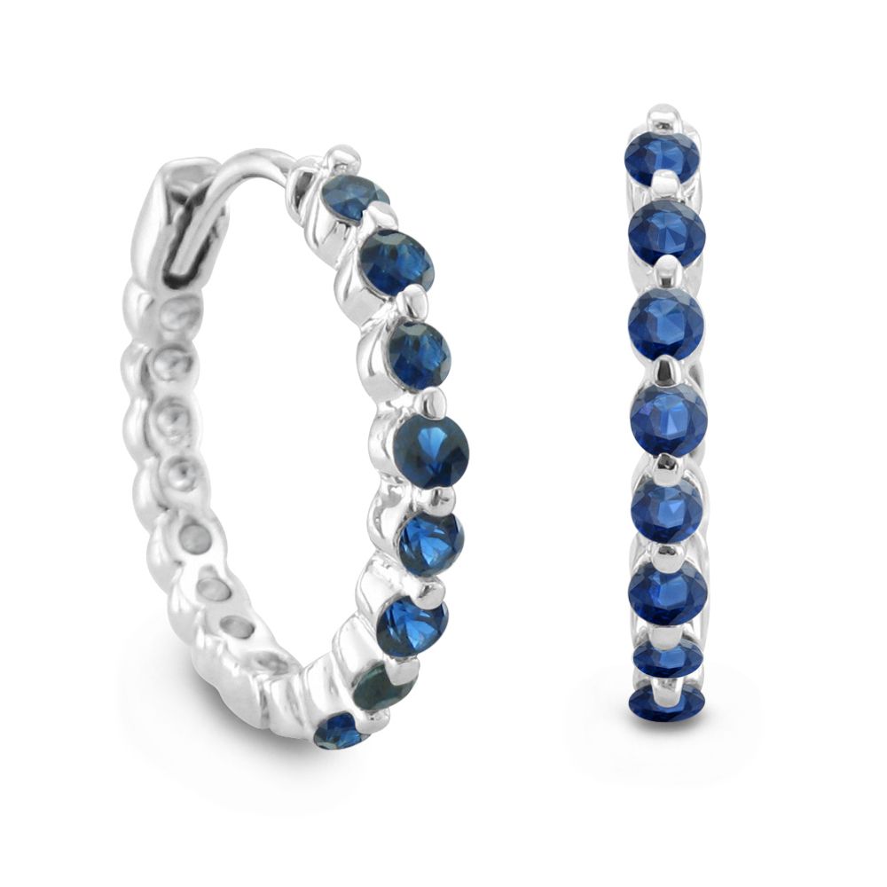 8 Stone Natural Sapphire Hoop Earrings in 14k White Gold, 0.80 cttw