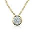This contemporary design of solitaire diamond necklace is beautifully crafted in 14k yellow gold. A glorious round brilliant cut natural diamond is surrounded by a thin bezel wall. The bezel set solitaire diamond pendant dangles gorgeously from a delicate 18-inch yellow gold cable chain. This solitaire diamond necklace is a perfect jewelry accessory for any occasion. Adorn your neckline today with this natural diamond pendant.