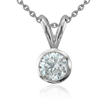 Bezel Set Solitaire Natural Diamond Necklace in 14k White Gold, 18-inch Cable Gold Chain (G, SI1, 0.25 ct)