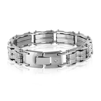 Men's Stainless Steel Link Diamond Bracelet (G, SI2, 0.05 carat), 8"